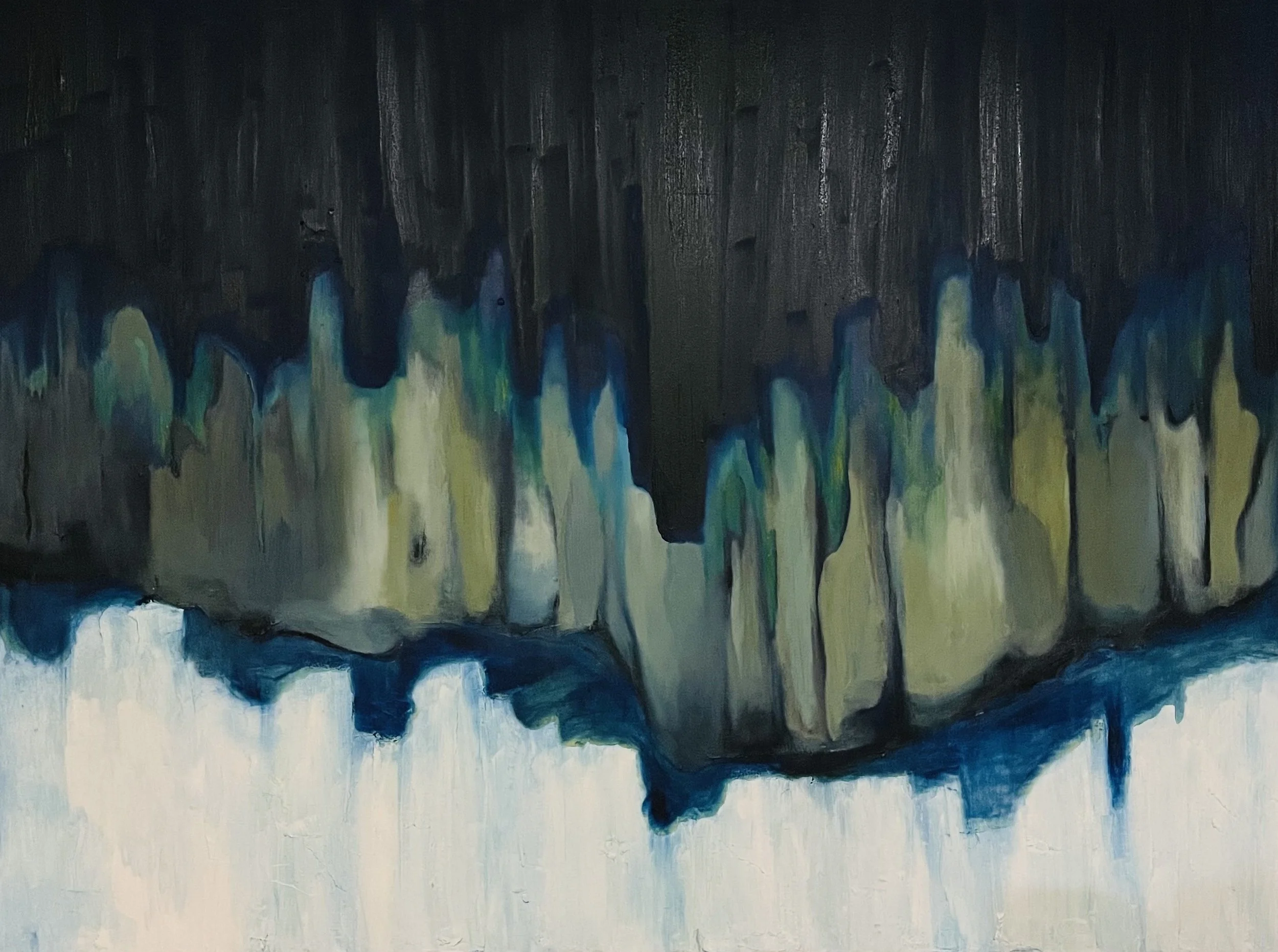 My paintings usually have 6-8 layers per piece and can dramatically change from start to finish. Usually, I work on 2 or 3 pieces at once and move between them as the layers of oil and linseed dry. I let them cook, review and add or subtract markings. I love to blend colours and feel totally engrossed when I do focus in that area of my work.